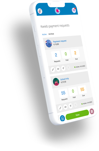Via the Ziber Teamapp you can easily share payment requests with parents and see immediately who has already paid. Create the payment request, select the children and share the payment request. Parents of the selected children will receive a notification in Kwieb and the payment request will be visible. They can make payment via common payment methods in the country where Kwieb is used.
